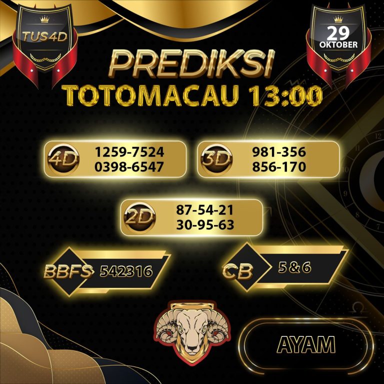 PREDIKSI TOGEL TOTOMACAU 13.00 / 29 OKOTBER 2025 TUS4D...