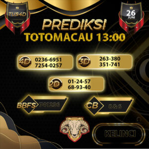 PREDIKSI TOGEL TOTOMACAU 13.00 / 26 JUNI 2025 TUS4D
