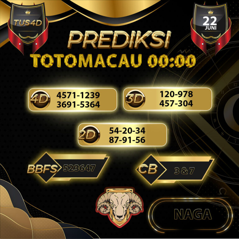 PREDIKSI TOGEL TOTOMACAU 00.00 / 22 JUNI 2025 TUS4D...