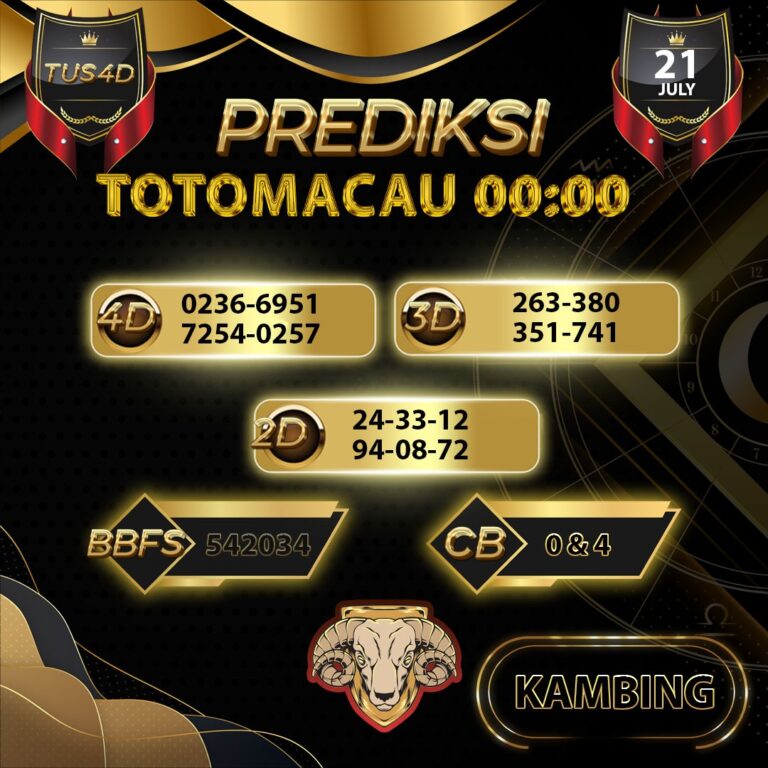 PREDIKSI TOGEL TOTOMACAU 00.00 21 JULY 2025 TUS4D Utamakan...