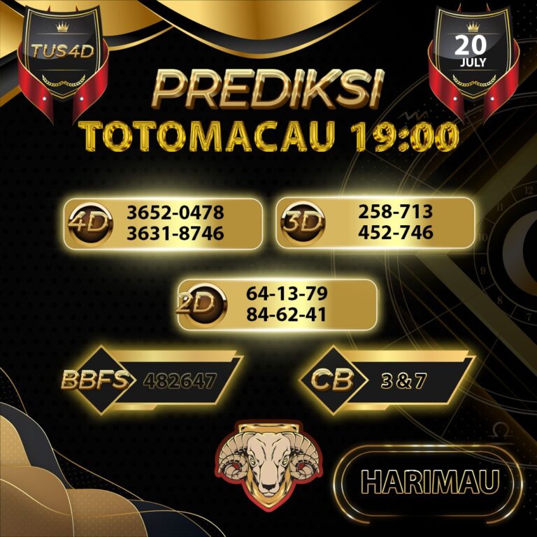 PREDIKSI TOGEL TOTOMACAU 19.00 20 JULY 2025 TUS4D Utamakan...