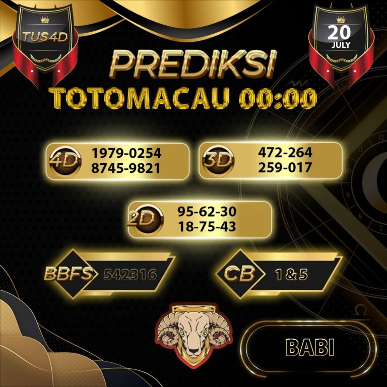 PREDIKSI TOGEL TOTOMACAU 00.00 20 JULY 2025 TUS4D Utamakan...