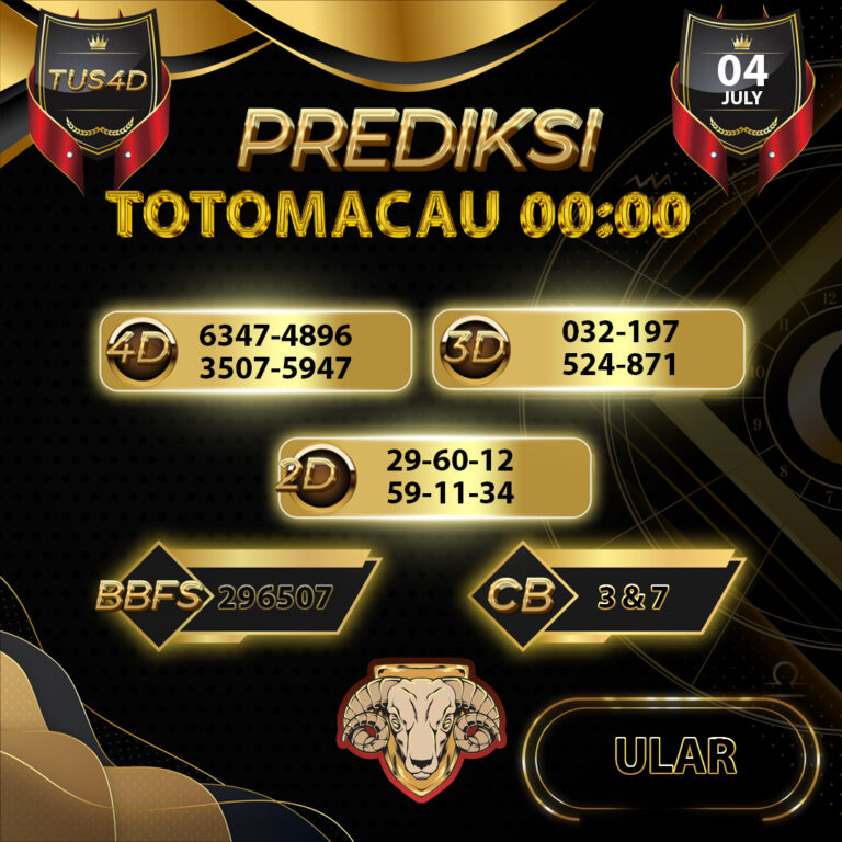 PREDIKSI TOGEL TOTOMACAU 23.00 04 JULI 2025 TUS4D Utamakan...