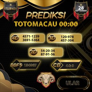 PREDIKSI TOGEL TOTOMACAU 00.00 / 28 SEPTEMBER 2025 TUS4D