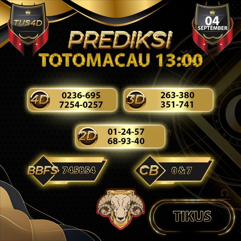 PREDIKSI TOGEL TOTOMACAU 13.00 04 SEPTEMBER 2025 TUS4D Utamakan...
