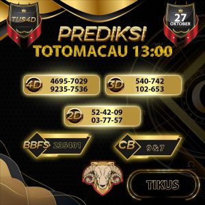 PREDIKSI TOGEL TOTOMACAU 13.00 / 27 OKOTBER 2025 TUS4D