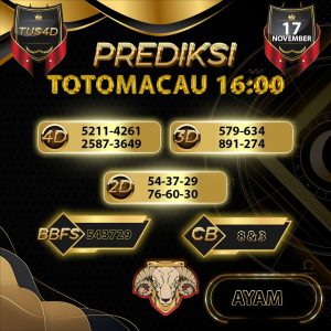 PREDIKSI TOGEL TOTOMACAU 16.00 / 17 NOVEMBER 2025 TUS4D