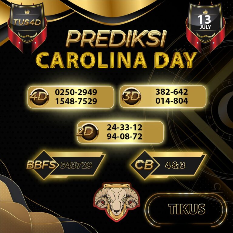 PREDIKSI TOGEL CAROLINA DAY 13 JULI 2025 TUS4D Utamakan...