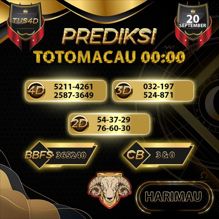 REDIKSI TOGEL TOTOMACAU 19.00 / 20 SEPTEMBER 2025 TUS4D...