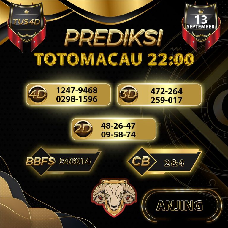 PREDIKSI TOGEL TOTOMACAU 22.00 / 13 SEPTEMBER 2025 TUS4D...